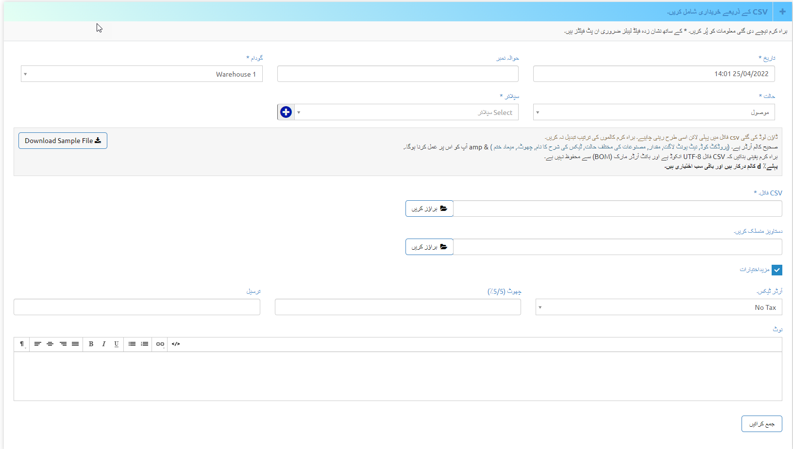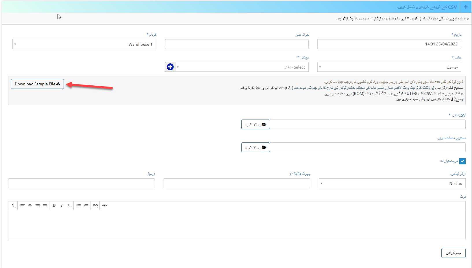کے ذریعے پرچیز شامل کرنے پر جائیں۔ CSV