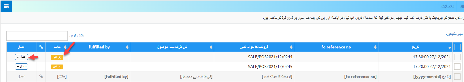 فل فلمنٹ کے بٹن پر کلک کرنے پر، آپ نمایاں کردہ بٹنوں پر کلک کر کے فل فلمنٹ کی حالت میں ترمیم یا فل فلمنٹ کر سکتے ہیں۔