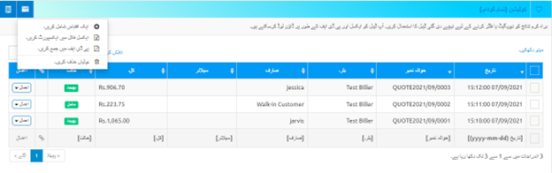 کمبائن ٹو پی دی ایف: کمبائن ٹو پی ڈی ایف بٹن پر کلک کرنے سے، کوٹیشن کی فہرست پی ڈی ایف فائل میں برآمد ہوگی۔