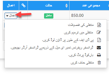 ایکشن کے ڈراپ ڈاؤن پر کلک کرنے پر، آپ متعدد اعمال انجام دے سکتے ہیں۔
