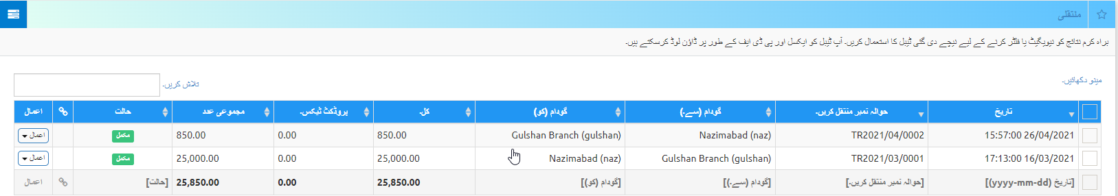 ایکسل فائل میں ایکسپورٹ کریں: ایکسپورٹ ٹو ایکسل بٹن پر کلک کرنے سے، ٹرانسفر کی فہرست ایکسل فائل میں ایکسپورٹ ہوجائے گی۔