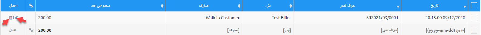 آپ نمایاں کردہ بٹنوں پر کلک کرکے واپسیوں میں ترمیم اور حذف کرسکتے ہیں۔