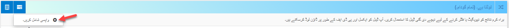 واپسی ڈراپ ڈاؤن بٹن پر کلک کریں۔
