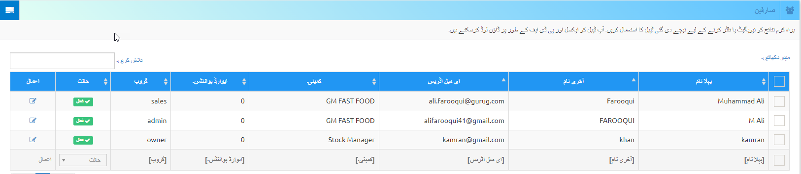 آپ فہرست صارف صفحہ پر صارفین کی تفصیلات دیکھ سکتے ہیں۔