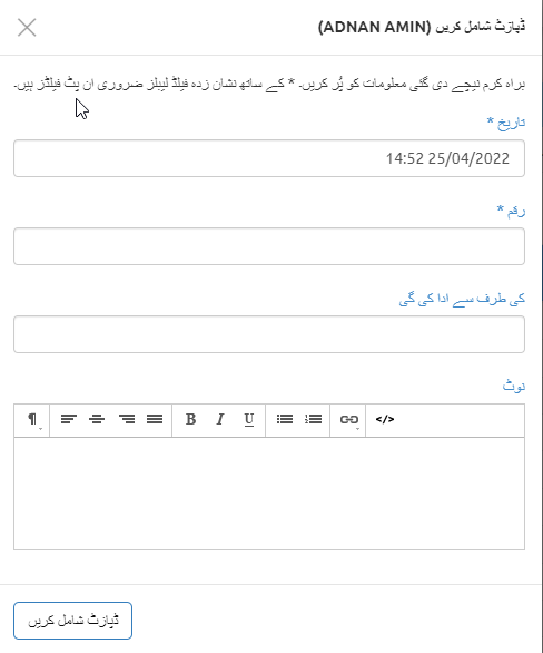 تاریخ: تاریخ اور وقت درج کریں جب گاہک نے ڈپازٹ جمع کیا۔