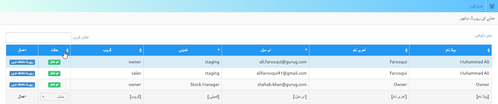 بزنس والا ہیلپ ڈوکومینٹرپورٹس اسٹاف رپورٹ اسٹاف رپورٹ بٹن پر کلک کرکے، آپ اپنے عملے کی تفصیلات کی رپورٹ دیکھ سکتے ہیں۔